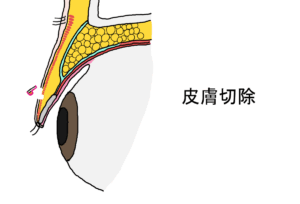 ①皮膚切除 たるみがなければ切開を入れるだけで切除は行わない場合もあります。