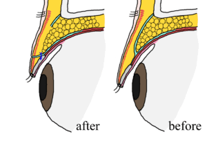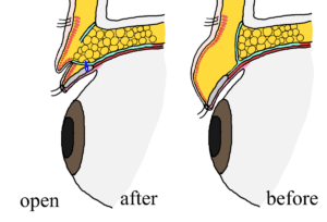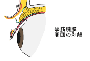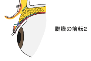 眼窩隔膜に割って入らずに腱膜の先端部分を前転させる方法もあります。