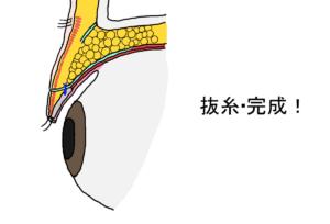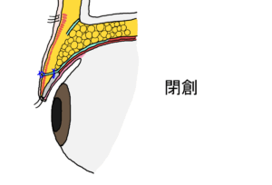 この際、腱膜に近いミュラー筋をもろとも縫合すると眼瞼痙攣の原因となる可能性もあり注意が必要です