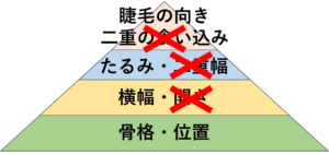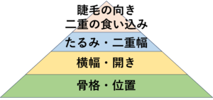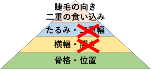 そこで私たちは、目元の手術に対して左右差をピラミッド構造で考えています。
