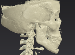 オトガイ形成:オトガイの先の骨を台形に骨切りして前方に移動し、プレートで固定してきます。